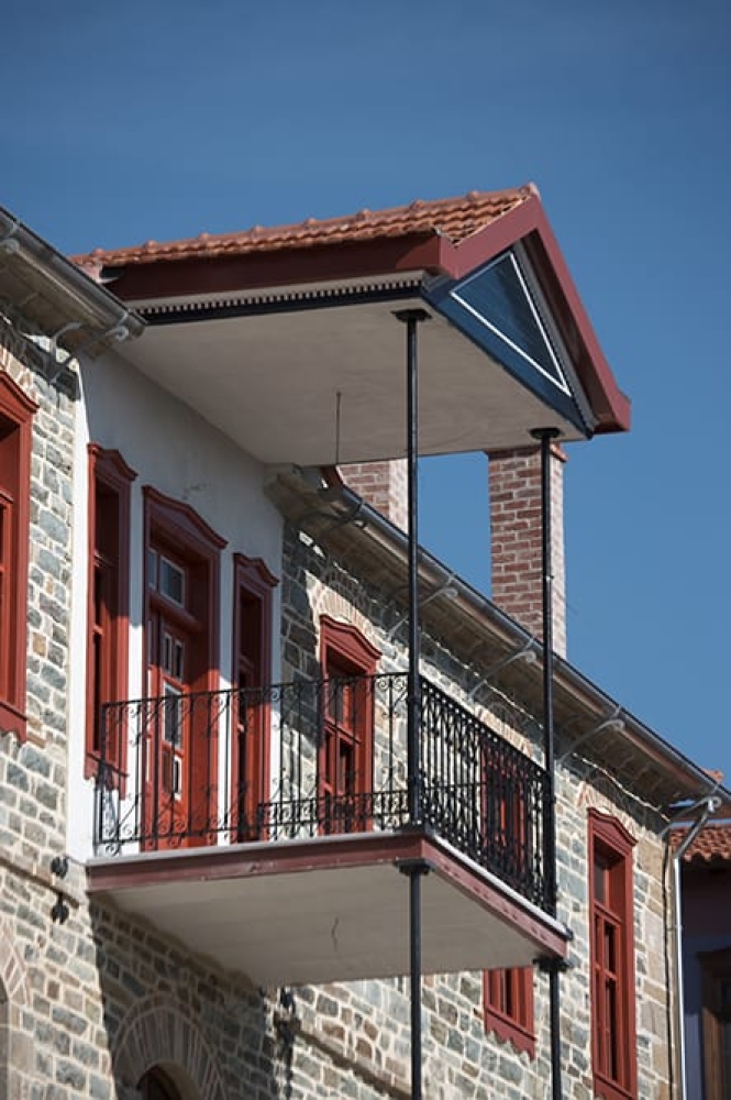 On the northern side of the courtyard stands the most impressive building of the old Vatopedi dependency. The Old Central Lodging, the Konak. A 1903 building, as indicated by the founder signs, it initially housed the dining hall, the cells and the higoumeneio, i.e., the Mother Superior’s residence. The small chapel of St. Mary Magdalene served the initial liturgical needs of the sisterhood, when the nuns first settled here. Built by Xenophon Paionidis, an architect from Kassandra, the Old Central Lodging is a typical example of Balkan architecture at the turn of the 19th to the 20th century. The final and most important preservation and restoration phase was completed in 2007, salvaging the building’s authentic character to a great extent. The ground floor of the building now houses the Convent Library.