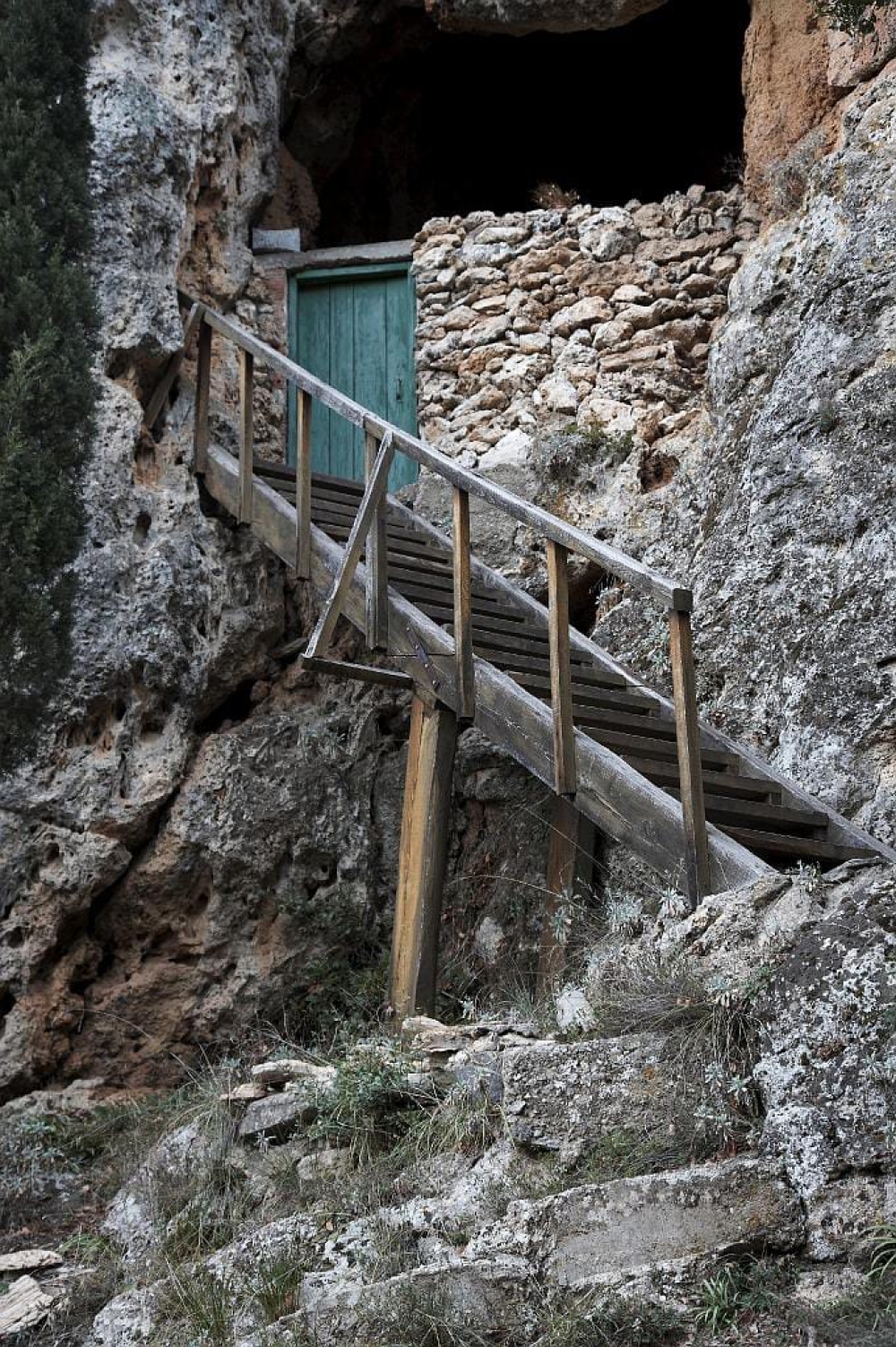 Ladder leading to the cave of Saint Euthimios the new
